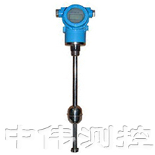 ZW-CZM系列高溫高壓型磁致伸縮液位計工作時,信號檢測單元發出詢問電流脈沖,該脈沖沿著波導絲產生一個環行脈沖磁場。在傳感器外管配有浮子,懸浮于變化的液面上下移動。由于浮子內裝有一組長久磁鐵,所以浮子同時產生一個磁場。當詢問電流脈沖磁場與浮子磁場相互作用,產生一個“扭曲"脈沖或稱“返回"脈沖,“返回"脈沖沿著波導絲向上傳輸,傳至拾振器上。根據“返回"脈沖與詢問電流脈沖的時間差,計算出浮子的實際位置,從而可準確地測得液位。