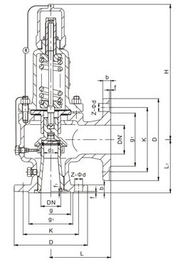 七、彈簧全啟封閉式安全閥(A42Y)外形尺寸和連接尺寸: